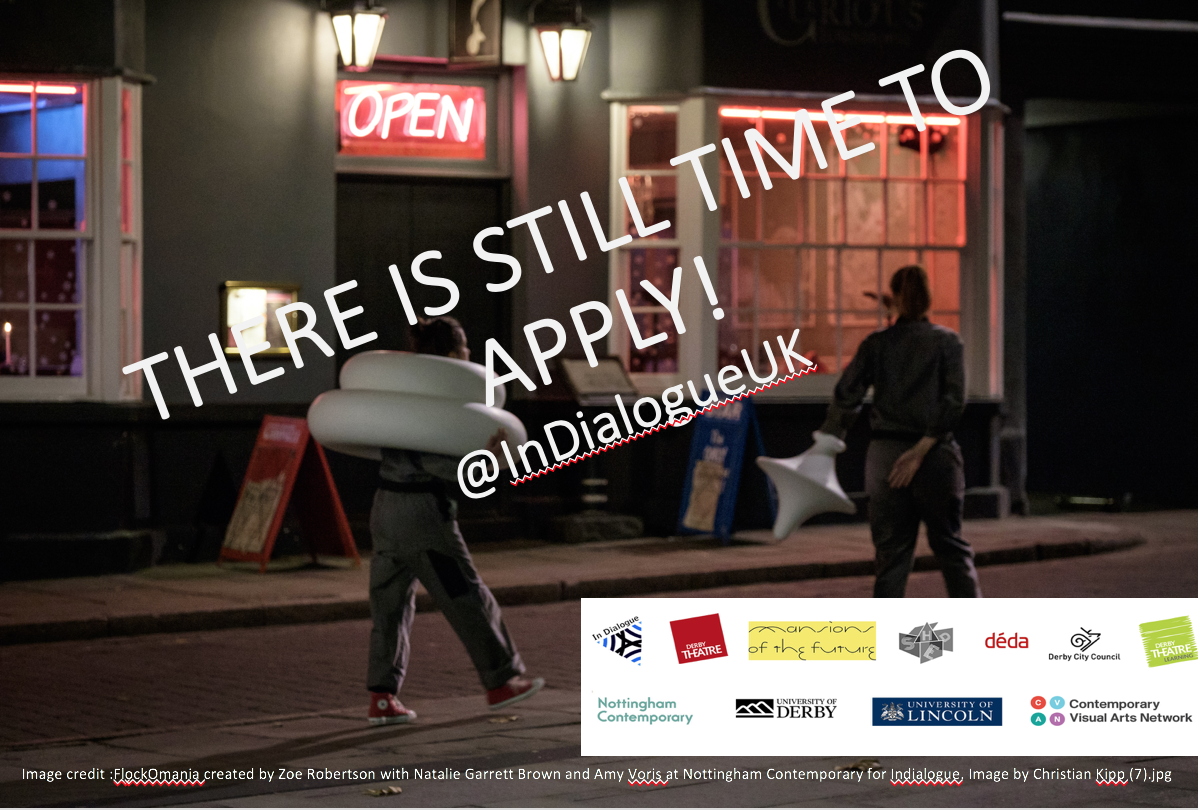 InDialogue is working with 11 cultural partners from across the East Midlands: Contemporary Visual Arts Network (CVAN), Dance 4, Déda, Derby City Council, Derby Theatre, In Good Company, Mansions of the Future, Nottingham Contemporary, S.H.E.D., University of Derby, University of Lincoln.